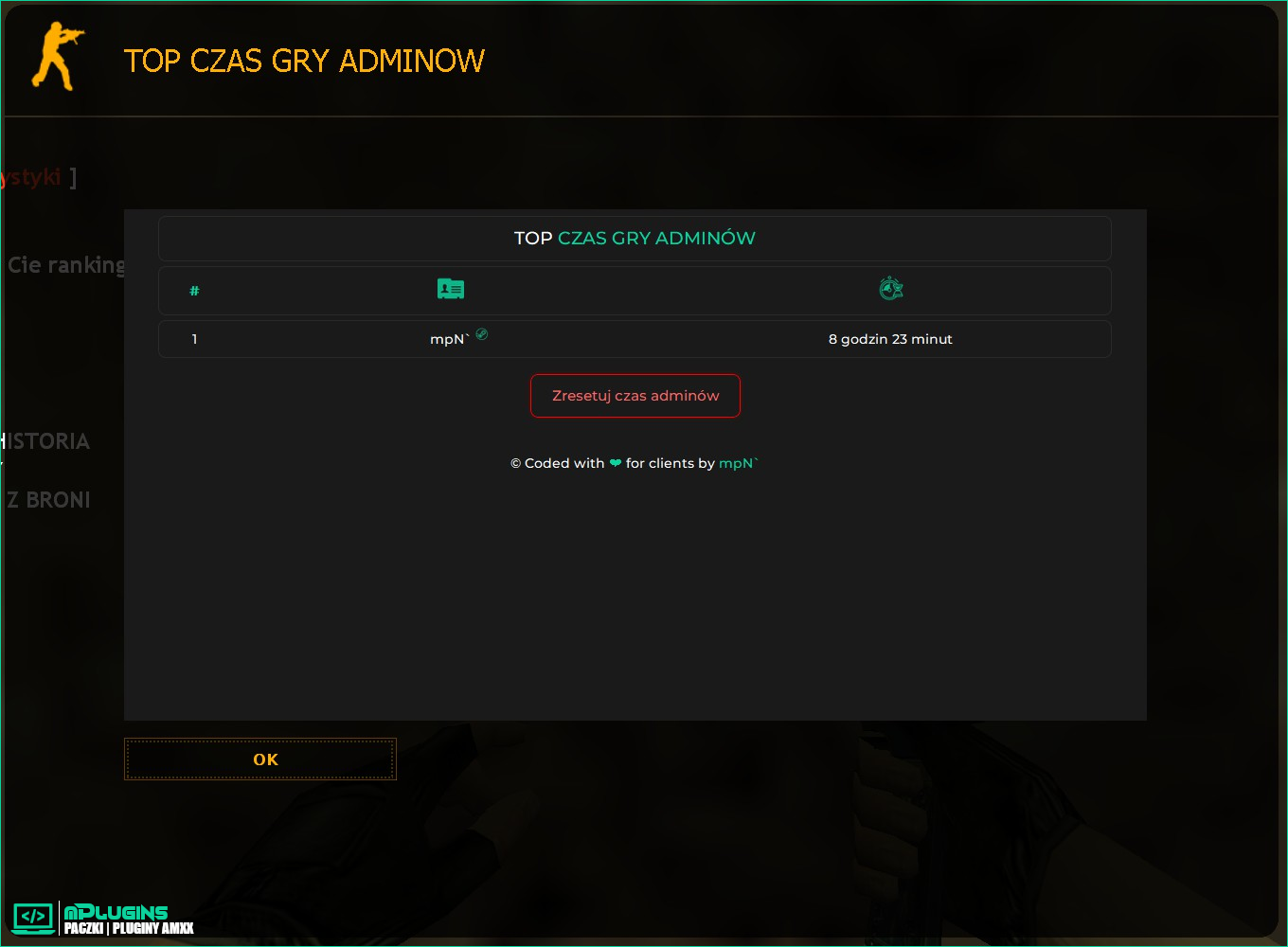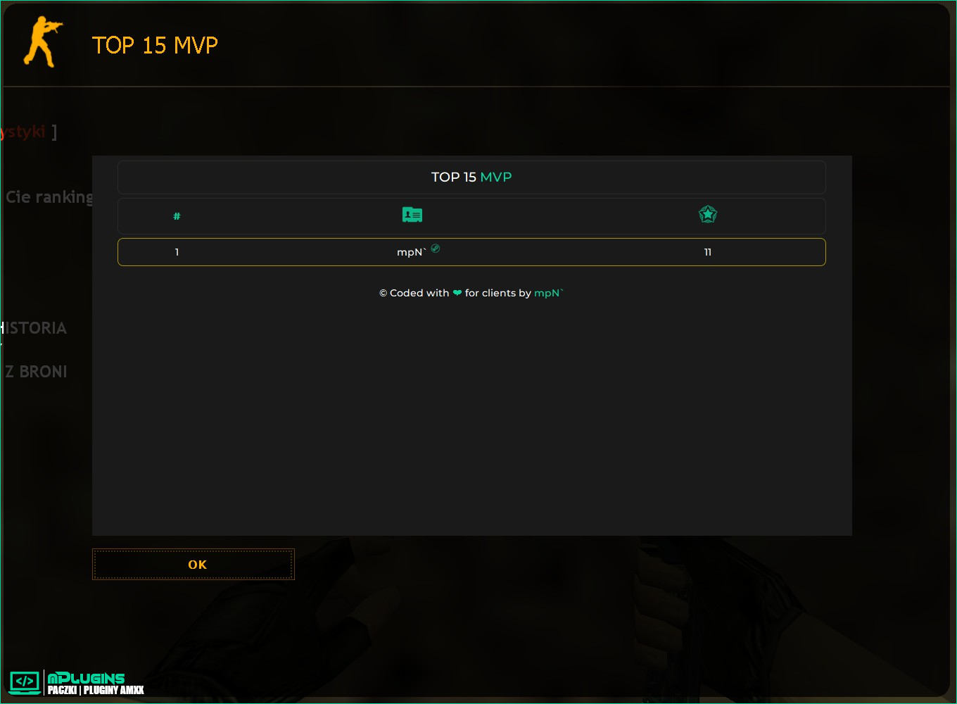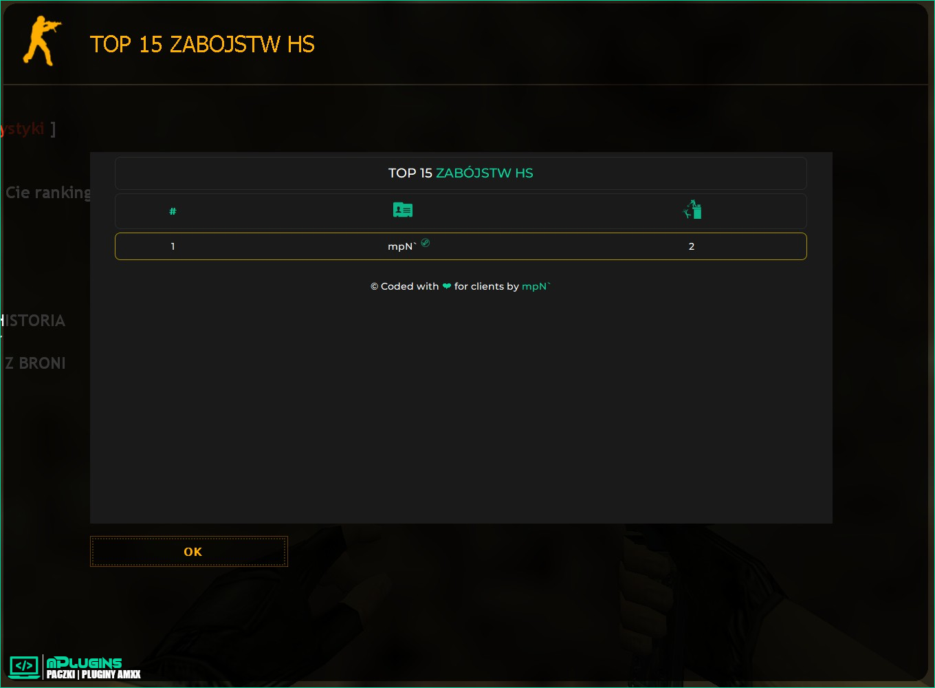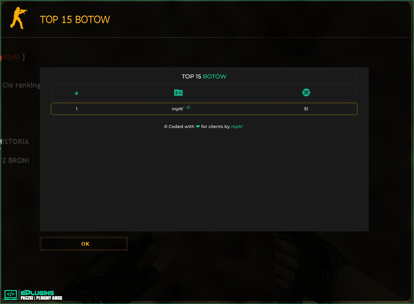 Plugin zastępuje standardowe statystyki Top15 oraz ranking.