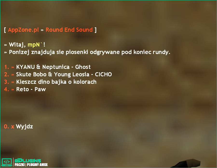 Plugin umożliwia odtwarzanie muzyki na zakończenie rundy, informując graczy o aktualnie granej piosence za pomocą komunikatu na czacie. Użytkownicy mają również możliwość sprawdzenia tytułu poprzednio odtwarzanej piosenki, jeśli go nie zapamiętali. W menu pluginu można dostosować głośność odtwarzanych utworów, przeglądać listę dostępnych piosenek na serwerze oraz włączyć lub wyłączyć reklamy wyświetlane na czacie.