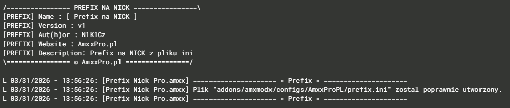 Zarządzanie wszystkimi prefixami odbywa się w czytelnym i prostym pliku tekstowym: addons/amxmodx/configs/AmxxProPL/prefix.ini